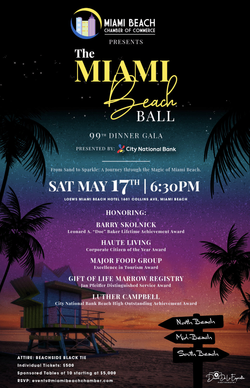 From Sand to Sparkle: Miami Beach Chamber of Commerce to Host Its 99th Annual Dinner Gala, the Miami Beach Ball