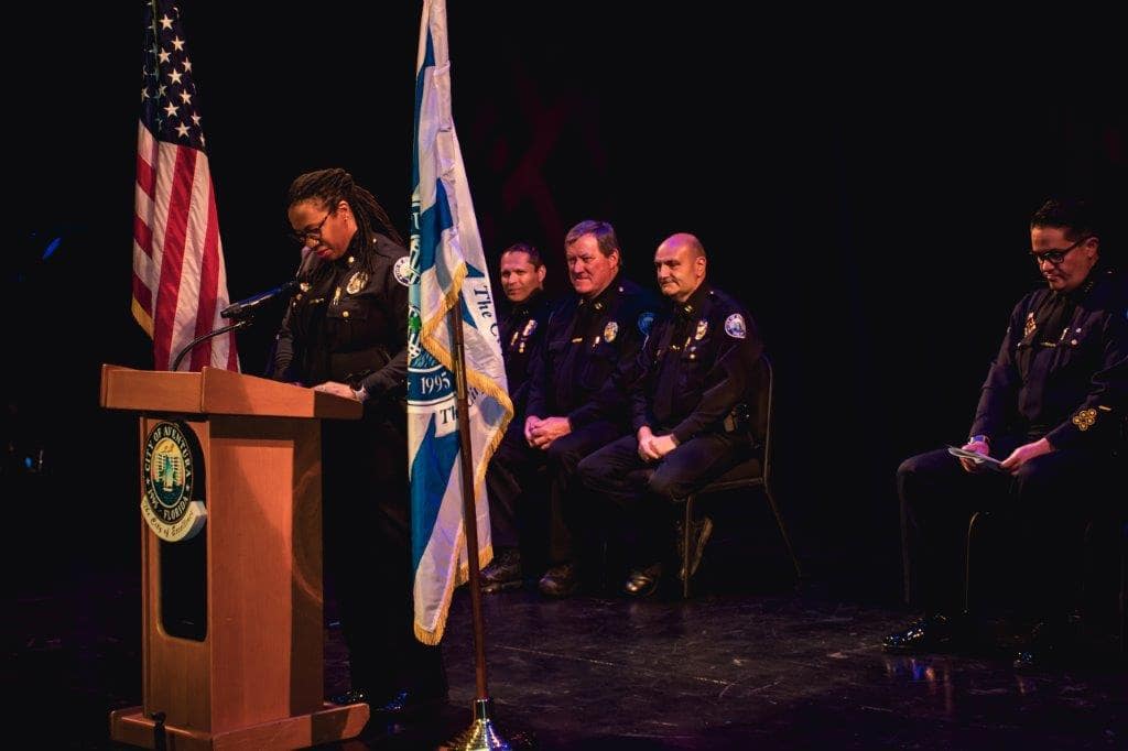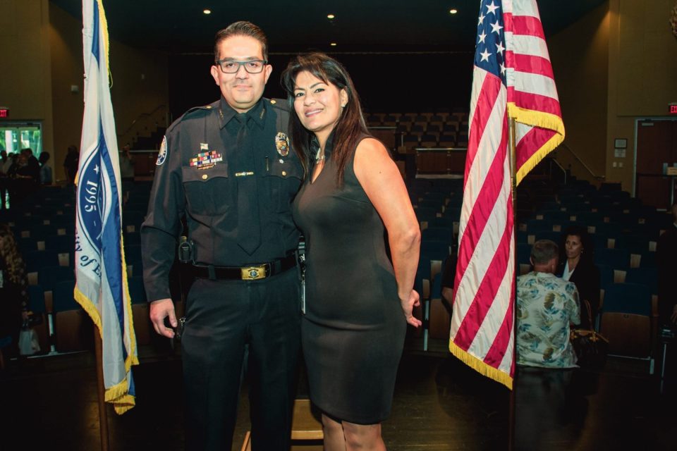 In his remarks, Bentolila emphasized the importance of the department maintaining and strengthening relationships with the community, quoting Albert Einstein, saying, “peace cannot be kept by force. It can only be achieved by understanding.” As he closed his remarks, he reminded the crowd of law enforcement officers of the nobility of policing and the responsibility that comes with it, saying, “The badge we wear is just a few inches of metal. It weighs just a few ounces. But it comes with a heavy responsibility for those who choose to wear it. To everyone who wears the badge, and especially to the members of the Aventura Police Department – wear it with pride. Treat it with respect. Know that the nobility that comes with your careers as law enforcement officers is both your honor to carry and your responsibility to protect.”