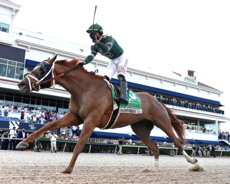 Known Agenda ridden by jockey Irad Ortiz, Jr. wins Curlin Florida Derby at Gulfstream Park