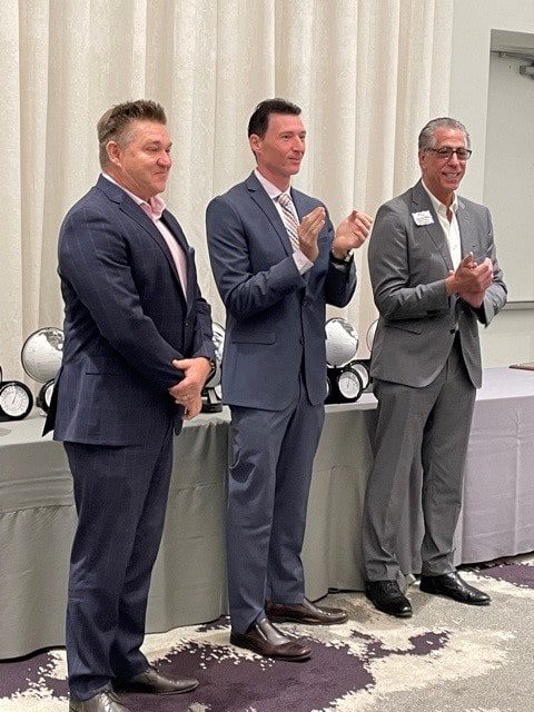Aventura Mayor Enid Weisman welcomed everyone and related a story about being asked, “What do police officers make?”, and her response was, “They make a difference!”. AMC Chairman Gary Pyott introduced all the Police Chiefs, Mayors and VIP guests at the multiple head tables, and then asked all members of law enforcement to stand and be recognized…the room was filled with the men and women who proudly accepted a standing ovation from the audience. After the meeting sponsors were recognized and the new AMC members were given their new member plaques, it was time for the special awards for each Police Chief. One by one, they were called up with all of their police department members and municipal leaders to accept the awards. Cameras were flashing constantly as these heroes of our community were recognized for everything they do to keep us safe.
