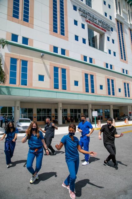 While they were dancers for an hour on March 30, the physicians immediately returned to the hospital upon completing the “Don’t Rush Challenge” to continue caring for patients here in Aventura.