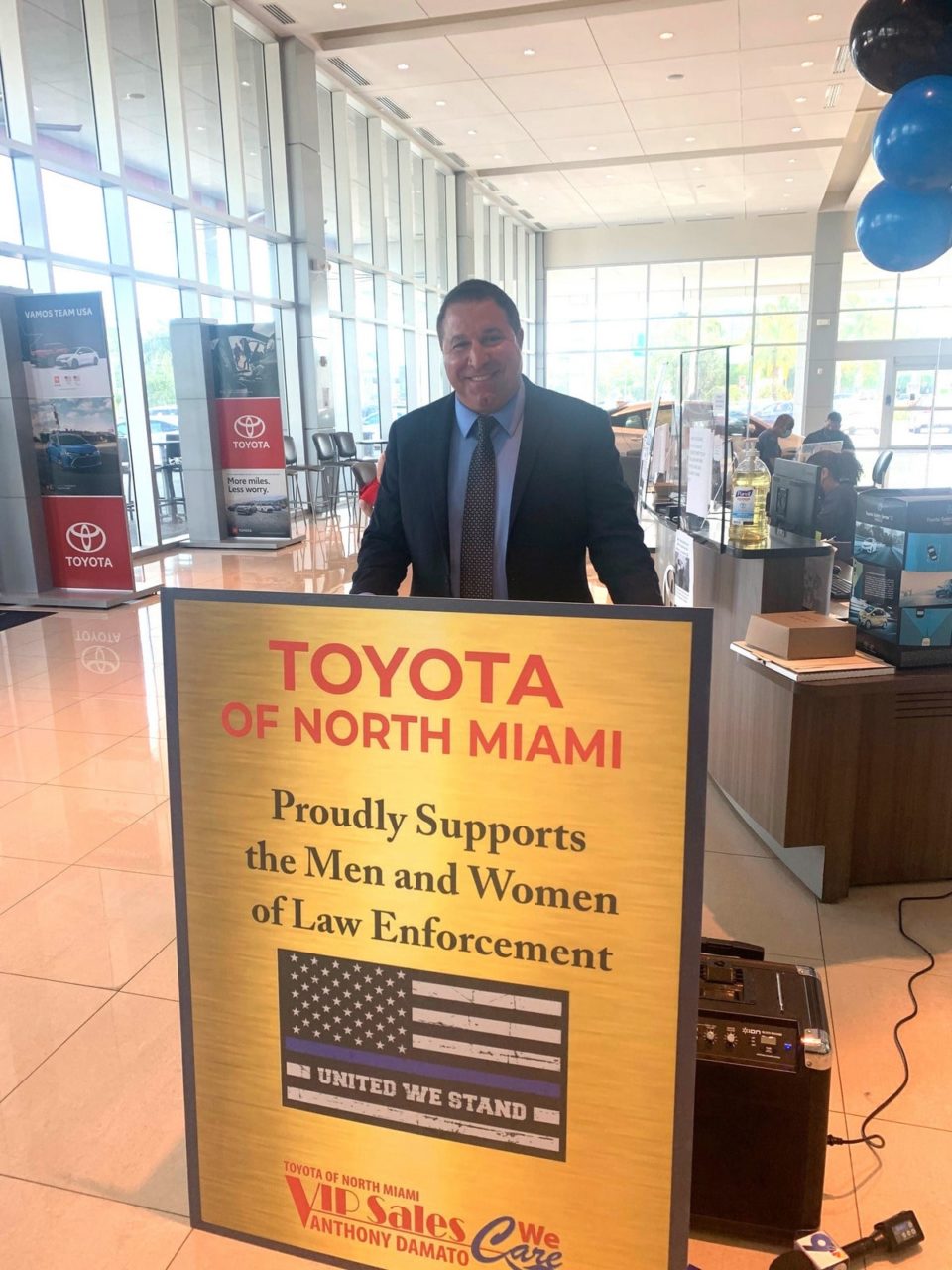 Anthony Damato, Director of VIP Sales and Community Engagement for Toyota of North Miami, has created a tradition of honoring law enforcement by donating a three-year lease to the recipient of the Miami-Dade Association of Chiefs of Police ‘Officer of the Year’ for the past five years. Damato said, “Our business community and our community stands in solidarity with law enforcement and recognizes the incredible sacrifices these brave men and women make each day that they leave their homes. It is Toyota of North Miami’s pleasure to be able to do this small gesture to show law enforcement how much they mean to us and how valued they are.” Partnering in this year’s donation was Barry Skolnick, Chairman of the Community-Police Relations Foundation, a charity dedicated to strengthening community and law enforcement relations.
