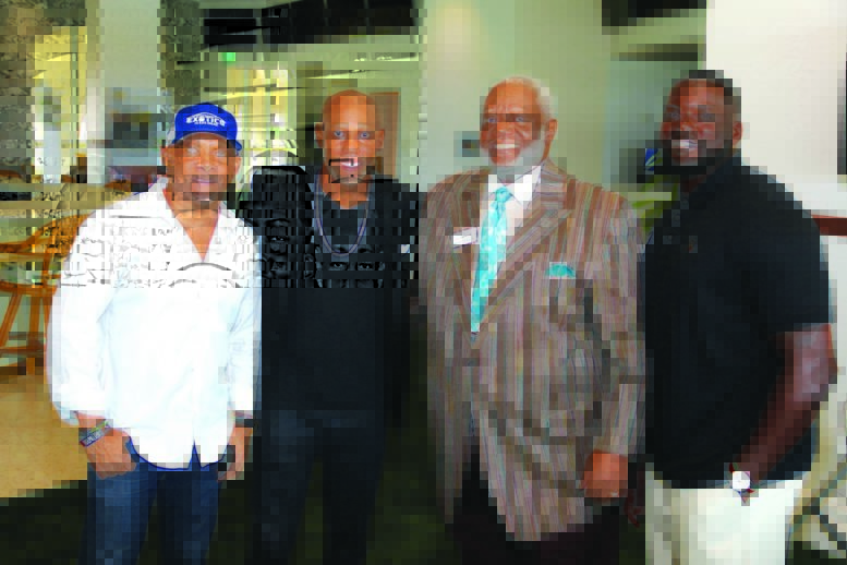 Continuing on with athlete introductions, Berry said, “” Let’s start with a young man born and raised in So. Florida. He went to Miami Beach Sr. High, played football at the “U” and was such a star player there that he was drafted right into the Baltimore Ravens. He had a key interception in Super Bowl XXXV that put the game on ice against the NY Giants. But he never forgot where home was, and after a stellar NFL career, he has come back and become a huge part of this community with all his charity work through his Quest for Success scholarships in Overtown…. welcome Mr. Duane Starks!”