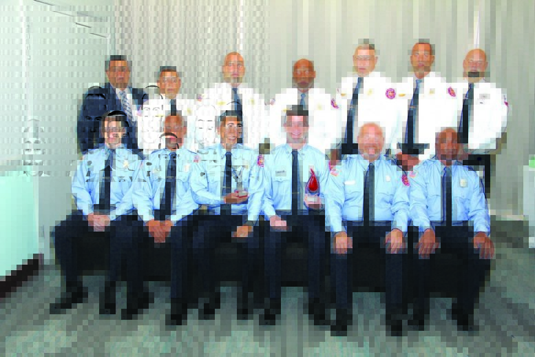 HOMESTEAD AIR RESERVE BASE FIRE DEPT: Fire Chief Lorenza Gardner and Ass’t. Chief Americo Mendez honored their “Spotlight Team”: Ass’t Chief Alejandro Padin, Capt. Trung Pham, Capt. John Mangual, Lt. Kevin Whitley, Lt. Orlando Thompson, Firefighters Kevin Ricklick, Sean Harding and Charles Carreras, Lt. John Ashford and Mr. Larossi Fox. During an early morning practice jump at the Homestead base, three elite soldiers from the U.S. Army Golden Knight parachutists had an accident that found them plummeting to the ground. Two of the soldiers were in very serious condition, with the third soldier in serious condition. The “Spotlight Team”, assisted by Miami-Dade Fire Rescue and Golden Knights personnel, responded immediately to this tragic event. Through the quick action of all crews on scene, the three patients were rapidly treated and transported to the nearest trauma center unit under the golden hour timeframe of one hour.