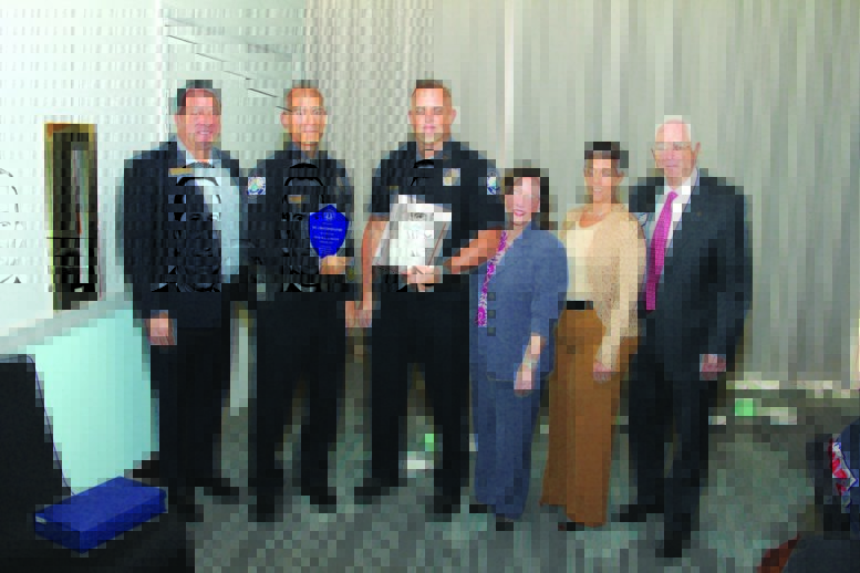 HALLANDALE BEACH FIRE RESCUE: Mayor Joy Adams joined Deputy Fire Chief Gregg Pagliarulo and EMS Chief, Capt. JoAnn Shapins, to honor Hallandale Beach Rescue Station 90: Ray Roseme, David DeCosta, Sara Fisher, Yarbul Gonzalez, Tammy Sexton, Gabe Castillo, Mike Gorman, Tony Gonzalez, Manny Gonzalez and Garth Bonner. When young Firefighter Paramedic Erik Conde suddenly collapsed just 30 minutes before his shift ended, his heart stopped, and he stopped breathing. His crew feverishly began life-saving efforts to bring him out of his life-threatening cardiac arrhythmia. His crew was able to re-start his heart, and after weeks in the Cardiac Intensive Unit at Aventura Hospital and great staff and aggressive treatments, Eric is alive today.
