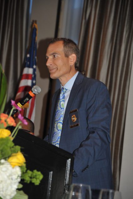 Held at the beautiful Trump International Hotel, almost 200 guests were treated to music and song during the reception. As everyone entered the meeting room, 14 year-old Young Star singer Emily Kaufman entertained the group. The business portion of the meeting included the recognition of an Officer of the Month, selected from among nominees from all 34 law enforcement agencies involved in MDCACP. The winner was Aventura Police Officer Hans Maestre, who received a plaque and special uniform pin signifying this prestigious recognition.