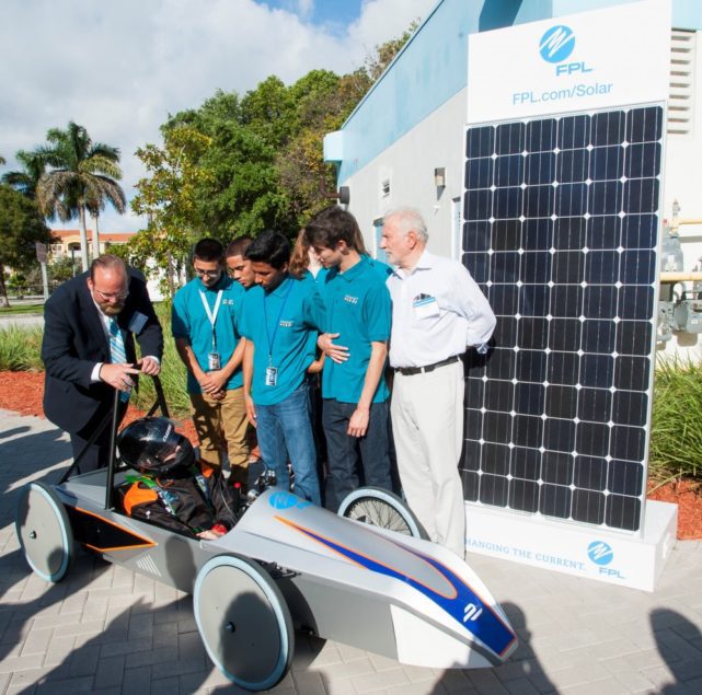 This year, FPL collaborated with three Miami-Dade high schools in building elec-tric cars for a student competition during the first fully-electric Formula E Miami ePrix race.