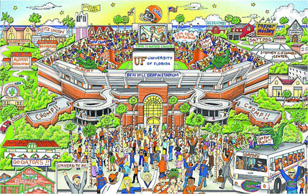 Charles Fazzino, internationally renowned 3D pop artist with collectors in more than 20 countries around the world, will showcase his much-anticipated Florida Gators tribute, “Gators Chomp the Swamp” artwork at Barker Animation in The Village at Gulfstream Park on Friday, April 8 from 6 – 9 p.m. and Saturday, April 9, from 4– 9 p.m.