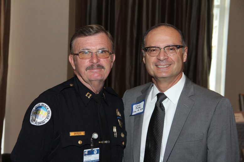 AMC Chair Gary Pyott of Association 1st welcomed guests gathered to “meet the mayors” as appreciation was expressed to Sunny Isles Beach leaders: Mayor George “Bud” Scholl, Vice Mayor Dana Goldman, Commissioner Jeanette Gatto, Commissioner Larisa Svechin, Commissioner Isaac Aelion, City Manager Christopher Russo, Assistant City Manager Susan Simpson, City Attorney Hans Ottinot, City Clerk Maurico Betancur, and incoming Police Chief Dwight Snyder, taking over for retiring Police Chief Fred Maas, who was recently inducted into the Florida Law Enforcement Officers’ Hall of Fame. Former Mayor Norman Edelcup and former Vice Mayor Lewis Thaler were also recognized for years of dedicated service.