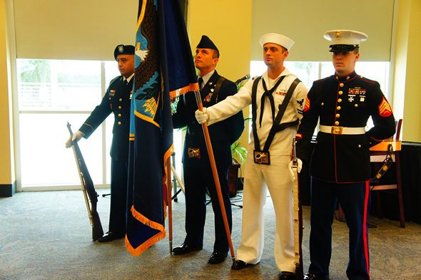 AMC Chair Cliff Schulman of Weiss, Serota, Helfman welcomed members of the military, as well as business and community leaders gathered at FIU’s Kovens Conference Center. Following the presentation of colors by the U.S. Southern Command Color Guard and the National Anthem sung by Claudia Sanchez of Alonzo and Tracy Mourning Sr. High, AMC members learned about the many benefits associated with hiring Guard and Reserve veterans returning home from tours of duty.