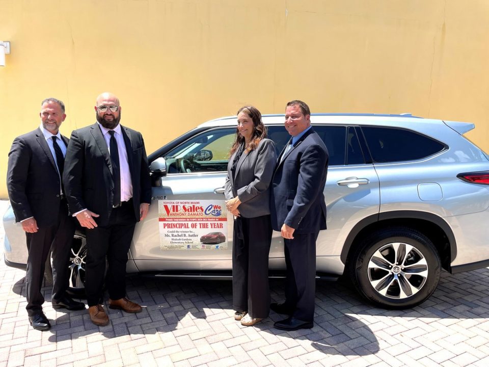 “Giving back” runs deep with Anthony Damato and Toyota of North Miami VIP Sales. Through a program that Damato created, the dealership has donated a three-year car lease each year to the Miami-Dade County Public Schools “Principal of the Year”. This year, the winner was Rachel B. Autler from Hialeah Gardens Elementary School, and the community came out to congratulate her. As the Dade Association of School Administrators and Damato presented the keys to a new 2021 Toyota Highlander, cheerleaders from Hialeah Gardens High School were cheering their principal on along with many staff and students.