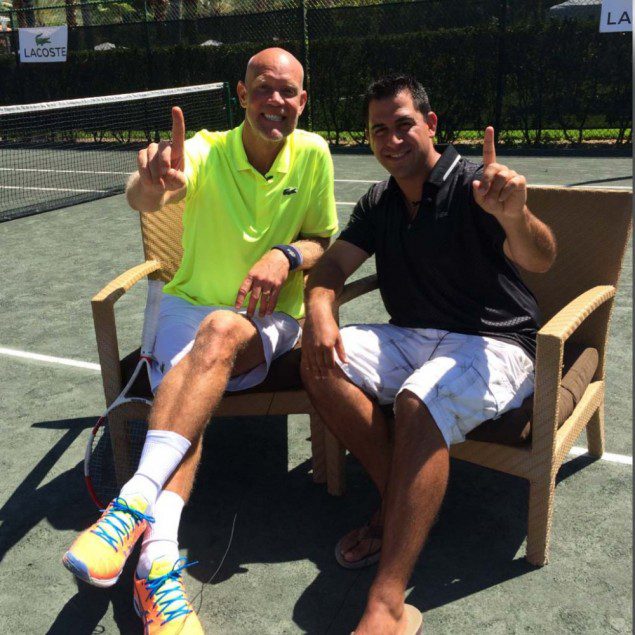 Lacoste brand ambassador Murphy Jensen is a former professional tennis player who gained international attention after he and his brother Luke won the men’s doubles title at the 1993 French Open. Dr. David Muransky, Chiropractor and part of the ’69 NJCAA national championship tennis team, interviewed Jensen, and his first question was, “Is it true that you and your brother Luke taught the Bryan brothers (current #1 doubles team in the world) the true ‘art’ of the chest-bump?” Jensen laughed heartily and replied, “Yes, it is true! It started when they were juniors and Luke and I were mentoring them. We are so proud of their successes—and they now have the best chest-bumps….even better than the Jensen brothers!”