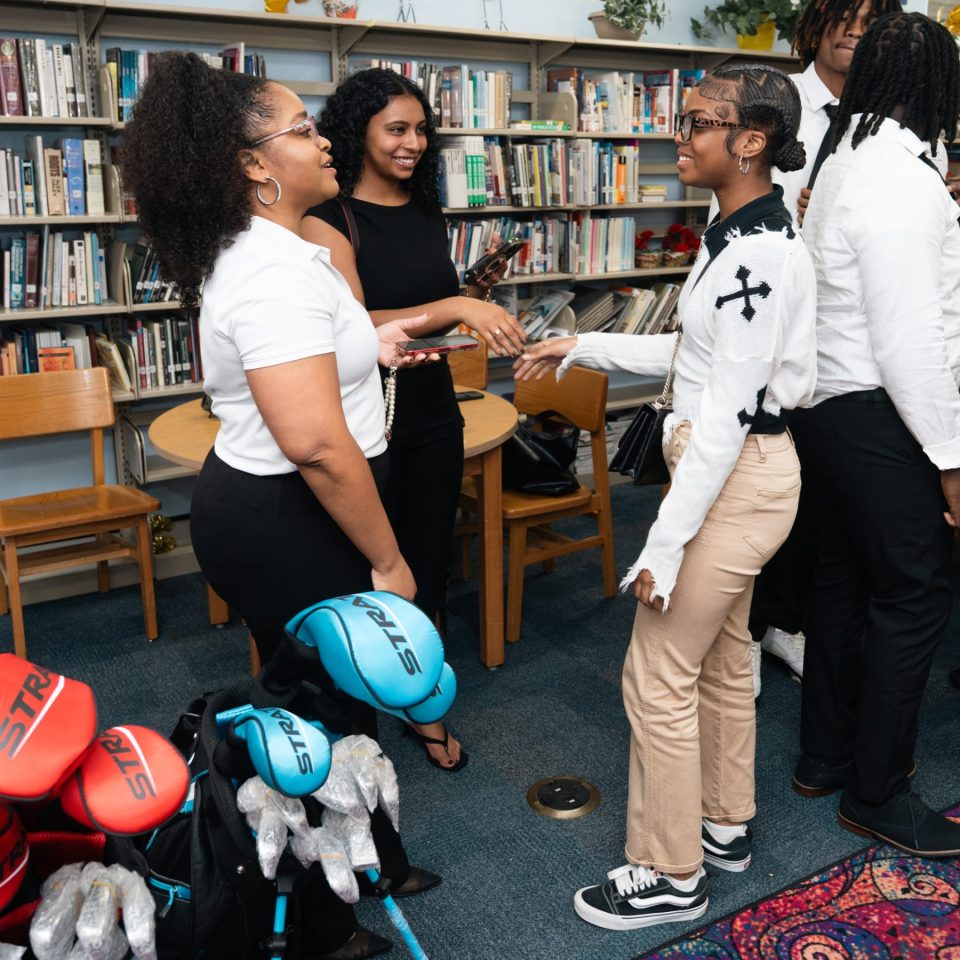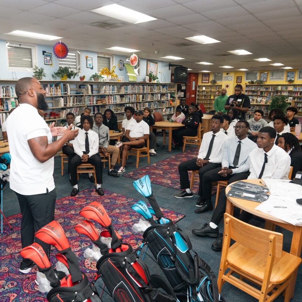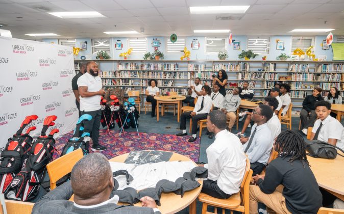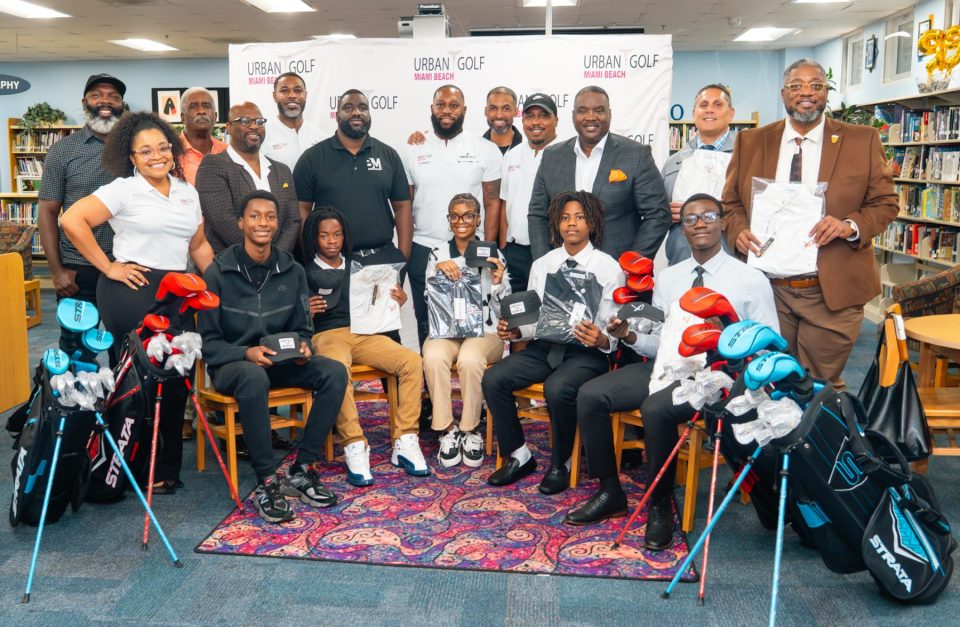 Hosted in the school’s Library and Innovation Center, the event marked a meaningful milestone in Miami’s community legacy. In partnership with the Future Leaders of Hospitality and Tourism (FLHAT) and the Overtown Children & Youth Coalition (OCYC), Urban Golf Weekend (UGW) presented the school’s newly revived golf program with brand-new clubs and uniforms—symbolizing a renewed commitment to youth development and access to opportunity through sport.