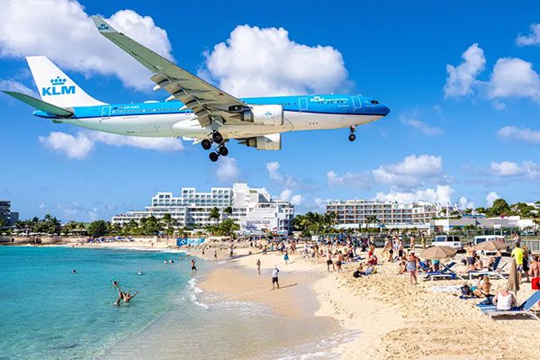Just around the bend, Maho Beach delivers one of the Caribbean’s most unforgettable sights. Here, adventure meets aviation as planes descend dramatically over the sand, close enough to make your heart race. The energy is contagious as crowds gather with cameras ready, laughter blending with the sound of engines. A few steps away, beach bars keep the vibe going with music, drinks, and stories shared between travelers who’ve just witnessed something unforgettable.