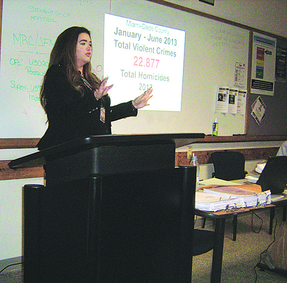 During a presentation, Vargas displayed the statistics of violent crimes in Miami- Dade (22,877 in one six-month period during 2013, including 97 homicides). Nearly all left someone in traumatic circumstances.