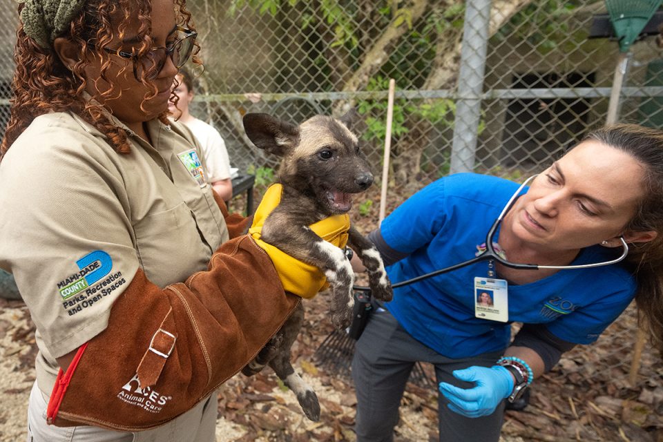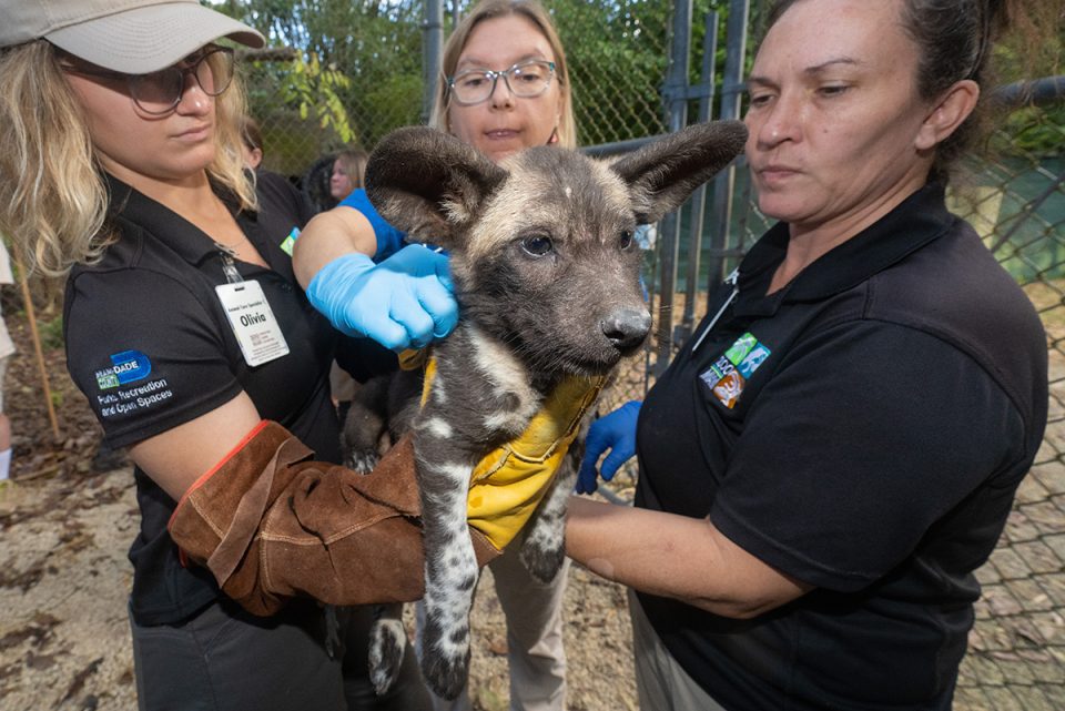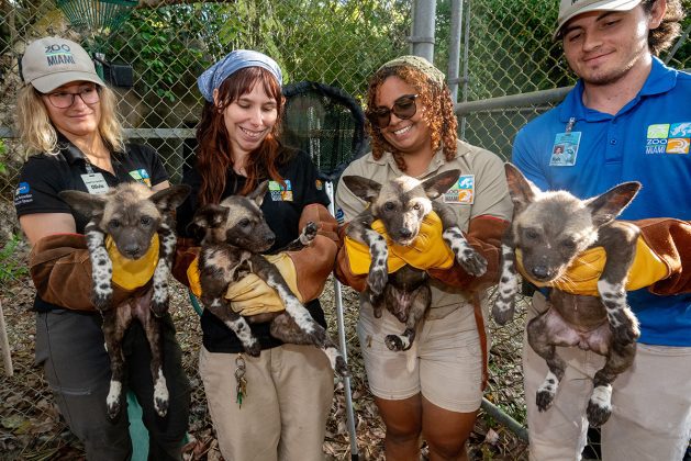 Zoo Miami is proud to announce the arrival of a litter of highly endangered African painted dogs! The litter, consisting of two males and three females, was born on November 20th and has remained secluded in the den with their parents since birth. This marks the first litter for the six-year-old mother, Uzuri, who was born at Zoo Miami. Her mother, Little Foot, also still resides at the zoo. The father, Cesar, is also six years old and was born at the Brookfield Zoo in Chicago. Both parents are doing an excellent job caring for their puppies. This is one of only three African painted dog litters born at AZA-accredited institutions in 2025.