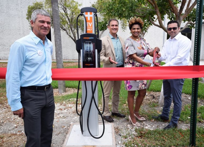 The event featured representatives from ChargePoint, South Florida Clean Cities Coalition and NextCar Pledge. In addition, a pair of electric vehicles was on display, supplied by Nissan and Tesla, promoting the multiple benefits of high-torque and zero-emission electric driving in Florida.