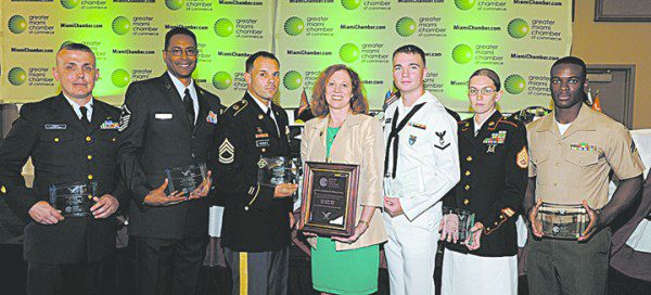 The Greater Miami Chamber of Commerce celebrated the accomplishments of outstanding local military personnel during its 25th annual Military Service Person of the Year Awards. The awards were presented on Wednesday, July 11, at the chamber’s monthly Trustee Luncheon at Jungle Island.