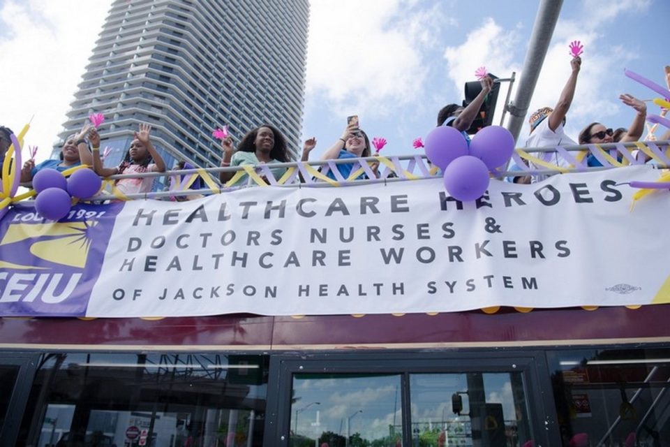 The parade had the participation of 27 municipalities, some represented by their own police and fire departments, as well as representatives of healthcare workers from some of the main hospitals and healthcare networks and unions in the county, including Jackson Health System, Baptist Health System, Aetna, NOMI Health, Citrus Health, SEIU Local 1991 and 1199 SEIU Florida.