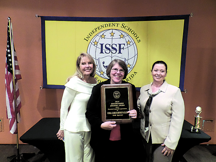 The Independent Schools of South Florida (ISSF) Star Luncheon attracted more than 700 guests to its 24th annual Star Awards at the Doubletree MACC Hotel where select students from independent schools were honored. Among the many sponsors recognized at the event was the GFWC Coral Gables Woman’s Club that hosts the ISSF’s spelling and geography bees at its clubhouse every year. Accepting a plaque from ISSF executive director Dr. Teri Logan with this writer was Debi Moore.