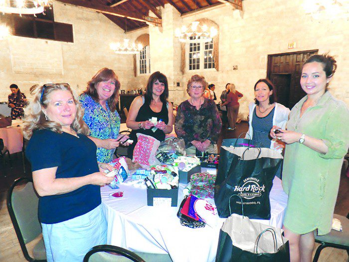 While one group of women worked on that project, another group tackled the donations of toiletries collected making 75 gift bags for women that were delivered by club president Mayra Dominguez to Agape Family Ministries.