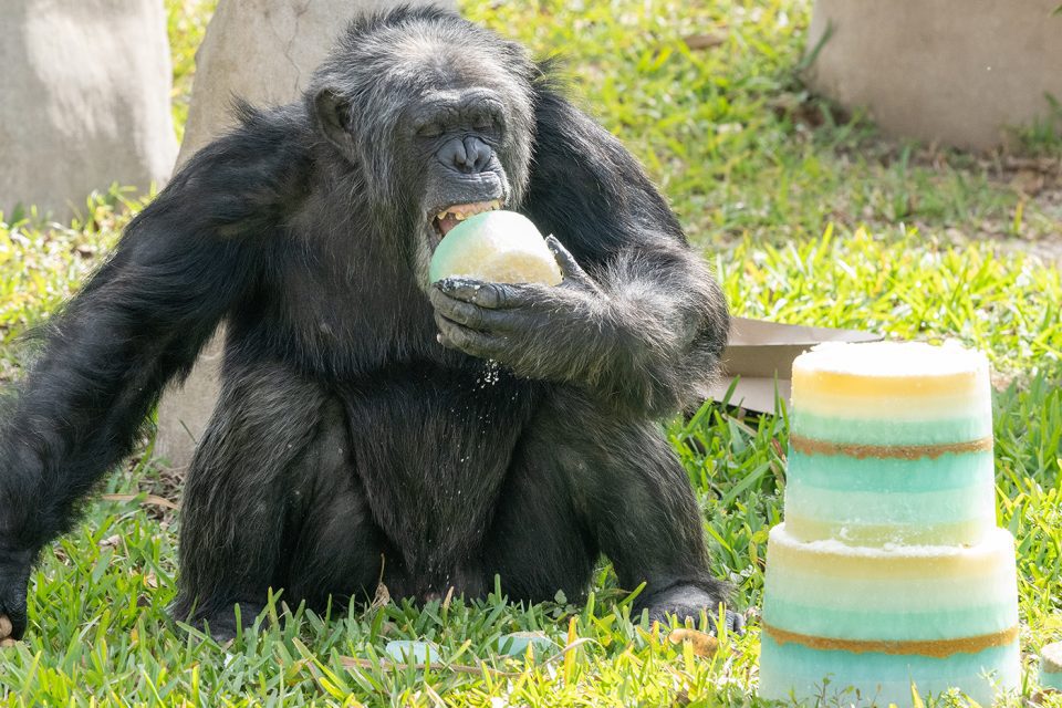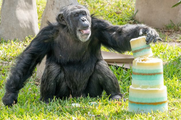 Today, Zoo Miami celebrated milestone birthdays for two iconic chimpanzees who have called the zoo home since the early 1980’s. Samantha arrived at Zoo Miami (then known as Miami Metrozoo) in November of 1981 from a private individual. Bubbles followed shortly thereafter in March of 1982, as part of an agreement with the Louisville Zoo,