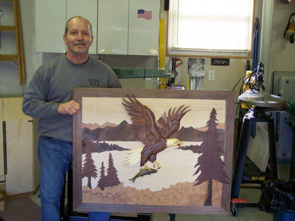 Doug Casper works as a physical therapist assistant and has been working with wood as a hobby for eighteen years. The woodworker focuses mostly on intarsia and marquetry, but he has built a few small pieces of furniture.
