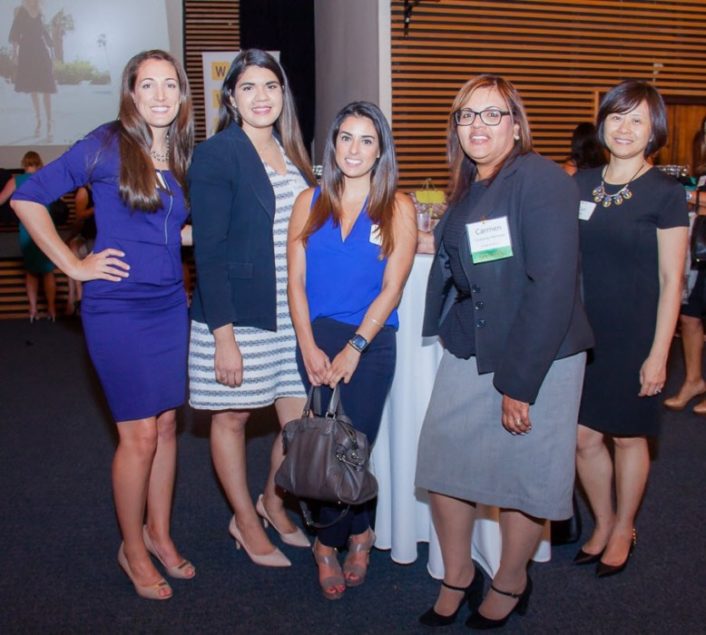 Women’s Fund Raise the Bar event featuring Trina Turk: Abbigail Webb, Cynthia Gomez, Anika Bembanaste, Carmen Contreras-Martinez (Arnstein & Lehr LLP-Sponsor), Qian Wen