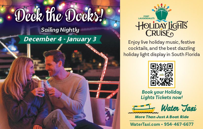 “Our holiday lights cruise has become a favorite tradition among locals and visitors alike,” said Bill Walker, president & CEO of Water Taxi of Fort Lauderdale. “It’s a great opportunity to cruise into the holiday spirit and is an excellent experiential gift that all ages will enjoy.”