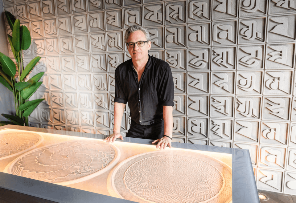 For those seeking a sultry escape, The Lounge at TIMBR offers a moody, seductive atmosphere inspired by adventure and mystery. Described by Tronn as “what Tom Ford would do if he did Tiki”, the space envelops guests in deep charcoal hues, global influences, and a touch of poetry—quite literally, with an original Tronn poem inscribed on the wall in ancient Tibetan script.