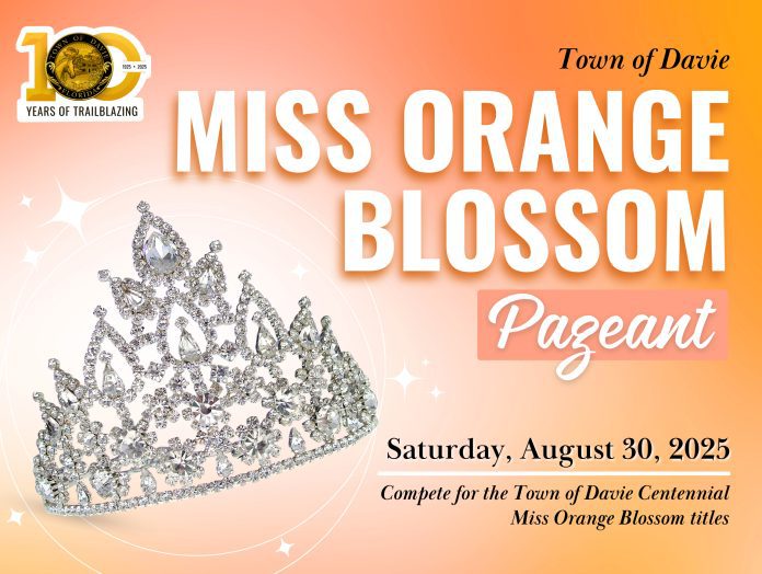 The Town of Davie’s Parks, Recreation, and Cultural Arts Department will host the Miss Orange Blossom Pageant on Saturday, August 30, 2025, at 10 a.m. The event will take place at the Pine Island Multipurpose Center, located at 3801 S. Pine Island Road.