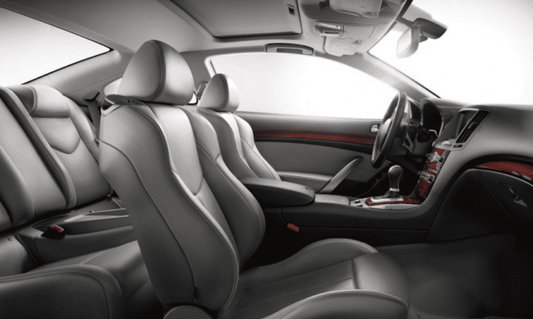 The Q60 Coupe interior design features a cockpit-oriented front seat area with the Infiniti signature “double wave” instrument panel design. Afull-length center console with a leather and aluminum-clad shifter and aluminum trim add a unique look to the instrument panel, center console and door panels.