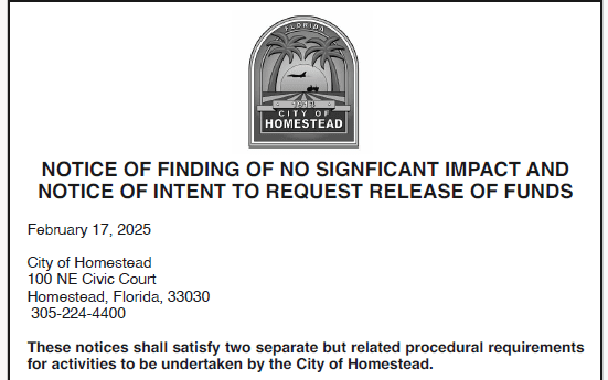 Homestead – Notice of Finding/Notice of Intent – February 17