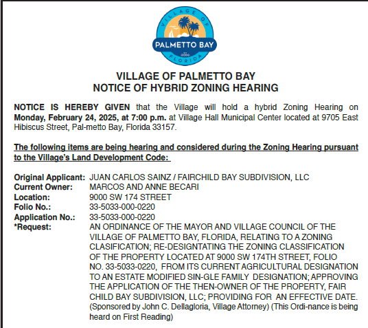 Palmetto Bay – Notice of Hybrid Zoning Hearing – January 27
