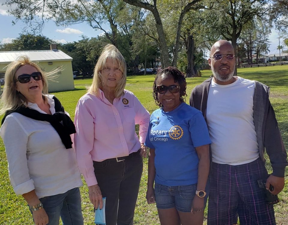 Beaux Arts was the start of a busy holiday weekend with Martin Luther King Day celebrations, picnics and more. In fact, on that Monday, Miami Rotarians and friends met for their annual barbecue at Tropical Park. As always Jay Almeida was among those grilling for the crowd that included club president Noreen Timoney, past president Shirley Pardon, Dianne Landsberg, Cory Gittner, Susan and PDG Robin Shelly, and two visiting Rotarian from the Chicago No. 1 club, Eric and Aleta Williams. Aleta is president-elect of that Chicago club that has some 165 members. She was presented with the Miami club’s flag to bring back to her club.