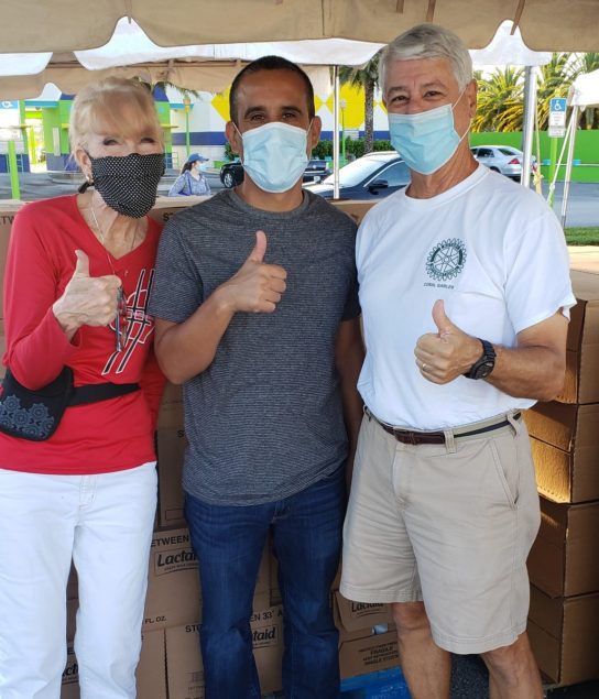 Rotary members continue to volunteer during these unprecedented times more than ever. Coral Gables Rotarians have taken on virtual bingo games with the clients of the Chapman Partnership again this month hosting two events online a week with Rotarians calling the numbers and underwriting the cost of prizes. Others Rotarians are seen volunteering at Tamiami Park Food Distribution with members of the GFWC Coral Gables Woman’s Club (CGWC) with whom they partner on various efforts.