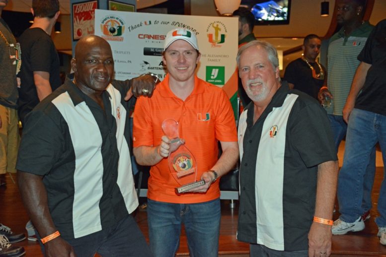 The seventh annual UM Sports Hall of Fame Celebrity Bowling Tournament, sponsored by CanesWear and hosted by UM legend Albert Bentley, took place on Monday, Feb. 26, at Splitsville in South Miami. More than 125 bowlers and 40 Canes All Stars, including nearly 20 UMSHoF members, attended.