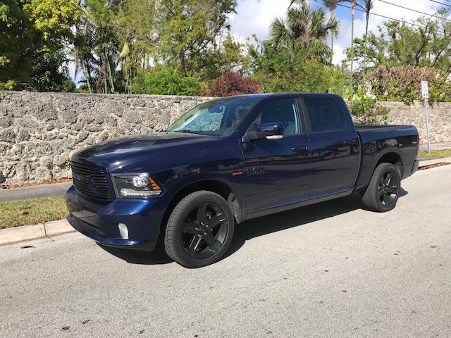 New looks this year for this RAM 1500 series include a special Harvest edition and the luxurious Limited Tungsten edition, which comes with an exterior sport hood, tungsten chrome pieces with eclectic finishes, and a premium leather interior with a faux-suede headliner. I just could not resist tooling around Miami in this new RAM 1500 Sport Crew Cab 4-by-2 with an eight-speed automatic 8HP70 transmission.