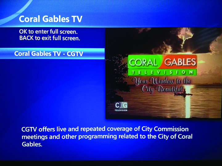 “CGTV is a great source of news and information designed specifically with the Coral Gables viewer in mind and we want to offer our programming in multiple formats,” said Coral Gables Mayor Jim Cason. CGTV transmits live and recorded city commission meetings, as well as Historic Preservation Board and Planning and Zoning Board meetings.