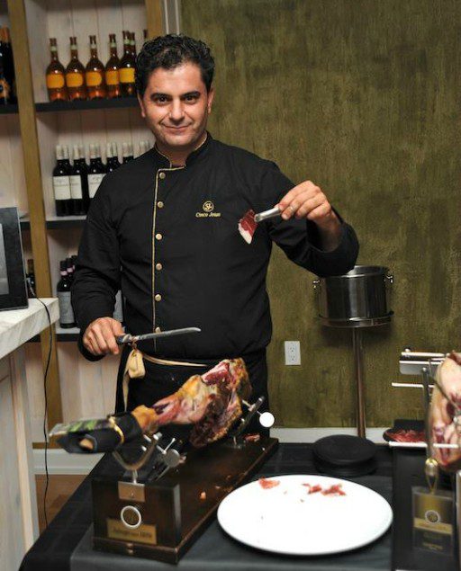 The service of our Master Slicer, Francisco Carrasco is now available in the United States and all over the world for your most special events by contacting info@ham-cheese-wine.com . Francisco would love to spoil you and your guests with the splendid culinary sensation that results from “the art of the cut”. Francisco is the first professional master slicer of Spanish ham in the United States. His future employer will be the famous Spanish chef, Andres, who needs someone like Francisco to not only train all the staff but work in all of his restaurants in the United States.