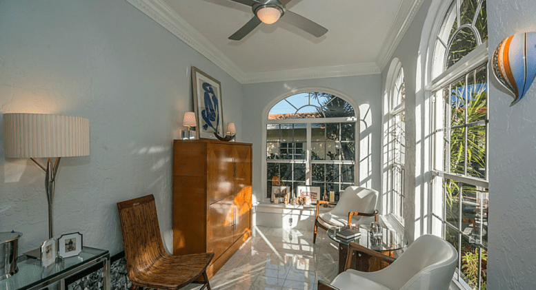 Modern Update to Old Spanish elegance in the heart of Coral Gables. Walk to Miracle Mile, and the Golf Course. Tropical backyard with a 1/1 updated guest cottage that includes a full kitchen and bathroom. Oversized Master Bedroom in main house with extra closet space. Refinished hardwood and new marble floors throughout. Working fireplace with built-in bookcases, formal dining room, chic marble & cuban tile entrance, and sunroom. New marble bath, A/C, washer/dryer, refrigerator, slate and garden patios, outdoor lighting, security camera system, and lush landscaping. Recently refinished roof with transferable warranty. Tastefully painted. Room for a pool or addition. Turn-key home, move right in!