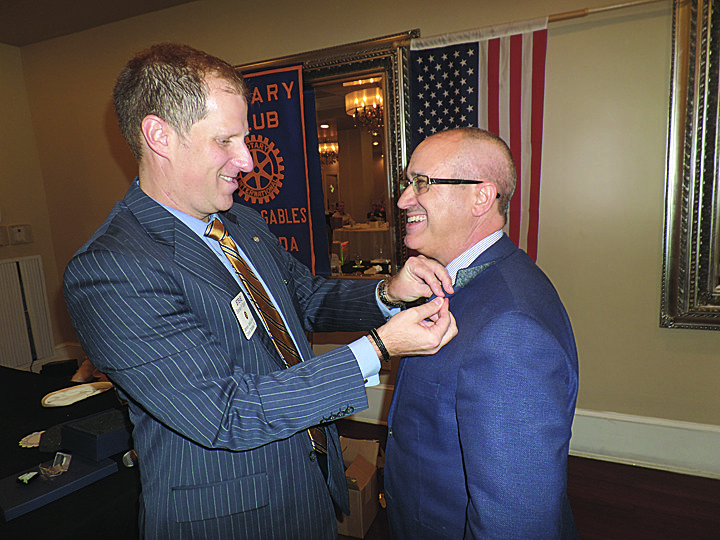 Outgoing Coral Gables Rotary president Carlos Bolado condcuted his final official meeting on June 25 at La Jolla in fine fashion recapping his year and announcing recipients for the President’s Award, Lorraine Sheldon, who chaired the Civic and Charity Committee and spearheaded a project that furnished the new apartments for six previously homeless veterans.