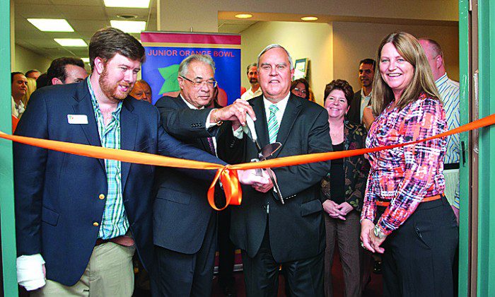 The Junior Orange Bowl celebrated its new downtown Coral Gables office with an open house reception and ribbon-cutting ceremony on Feb. 26.