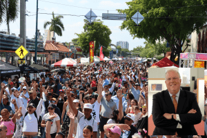 Borrowing the American tradition of holding an open house to welcome new families to a neighborhood, the ideas came together to create “Open House Eight, an Invitation to S.W. 8th Street.” Purposely all in English, however it was the non-Spanish guests who coined “Calle Ocho.”