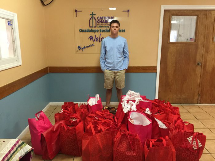 Riviera Preparatory’s Key Club, along with its president, Max Starke (pictured) provided “bags of love” food bags that also included gift cards from the local Winn Dixie for families as part of the Guadalupe Social Services of Immokalee. Guadalupe Social Services aids migrant workers who work on the farms in the Lake Okeechobee area. Starke, who is a pilot in training, flew most of the bags over with his flight trainer. Other Key Club members along with Key Club sponsor Rhonda Rose and Max’s parents, followed by car with the remaining bags.