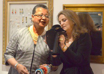 Coral Gables’ Essence Boutique owner Sandra Moreira shows SBA Deputy Administrator Marie Johns some of her jewelry selection during a visit to her store on Thursday, Dec. 13. Moreira was able to reopen a second store and create four new jobs by applying and being approved for an SBA Express Loan through JP Morgan-Chase Bank. Johns visited Essence Boutique to meet with Moreira and to highlight what consumers can do to support America’s small businesses during the holiday season.