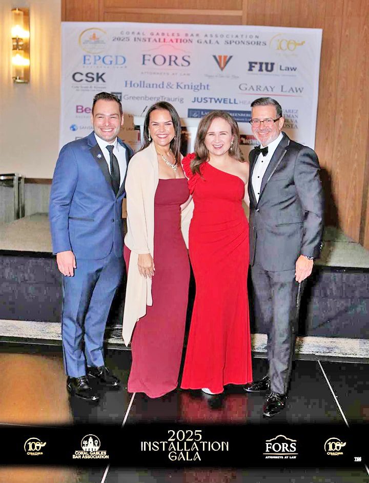 The installation ceremony, officiated by Florida Supreme Court Justice John D. Couriel, was both inspiring and celebratory. The 2025-26 officers of the Coral Gables Bar Association sworn in were: president Daniel C. Fors, president-elect Elina Magaly Santana, treasurer Vanessa Michaud, and secretary Ian Illych-Martinez.