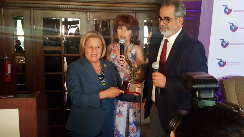Ros-Lehtinen represents the 27th Congressional District that includes South Miami, Coral Gables, Pinecrest, Key Biscayne, Kendall, Cutler Bay, Palmetto Bay, Westchester, Little Havana, Miami and Miami Beach. SFLHCC president/CEO Liliam Lopez, chair Ralph Gonzalez Jacobo, staff and board members knocked it out of the park with this beautiful tribute so well deserved attracting such notables as Florida Lt. Gov. Carlos López-Cantera, Miami-Dade Commissioner Jose “Pepe” Diaz, Doral Mayor Juan Carlos Bermudez, and past recipients of the award such as Juan del Busto, the former regional executive of the Miami Branch of the Federal Reserve Bank of Atlanta.