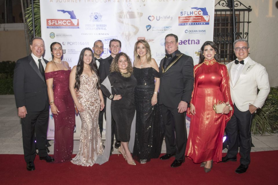 The South Florida Hispanic Chamber of Commerce (SFLHCC) marked its 32nd anniversary with the spectacular “Sands of Time” Gala at The Biltmore Hotel, celebrating over three decades of leadership and community impact. This year’s event drew business and community leaders from across South Florida for a magical evening of culture, awards, and entertainment.