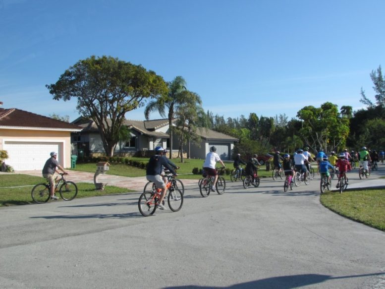 To promote bicycle safety, children and adult participants were fitted by certified town staff with new bicycle helmets free of charge. More than 50 helmets, donated by AMSCOT Financial and the Florida Pedestrian & Bicycling Safety Resource Center, were given out before the bike ride. Participants also were given bicycle safety tips from the University of Miami’s BikeSafe injury prevention program and complimentary bike inspections from Elite Cycling & Fitness and Andante bike shop.